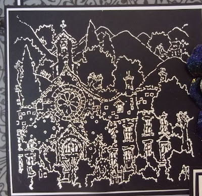 I used a stamp by Michael Powell called “Square Urban Stamp – The Chapel” I have to say I didn't like the look of this stamp as its coloured vividly on the packet – but saw this type of stamp done in one colour and it looked fab!